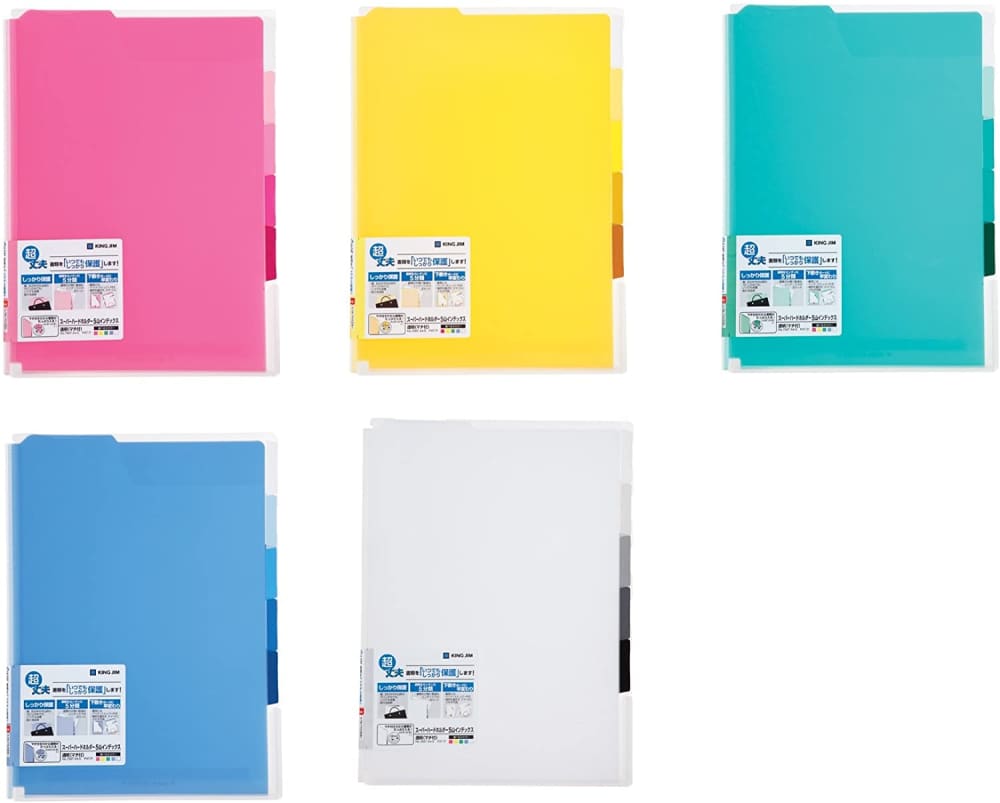 ビジネスシーンで活躍してくれる、スーパーハードホルダー。通常のクリアフォルダーよりも厚みがあるため、大切な資料をしっかり保護してくれます。5分類されているうえ、インデックスが付いているので、保管している資料をすぐに見つけることができるでしょう。コピー用紙であれば、約100枚入れられる収納力も魅力。