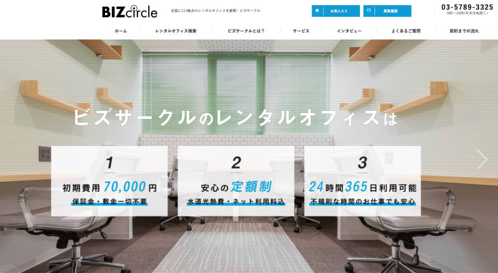 株式会社WOOCのBIZcomfortは、月額20,000円でレンタルオフィスを利用できるサービスです。初期費用も入会金と清掃費用の合計70,000円(税別)とかなり低コスト。会議室利用も15分100円と安く、さらに契約で全国のコワーキングスペースも利用できます。光熱費などは全て月額料金に含まれているので、追加料金が発生せず安心です。