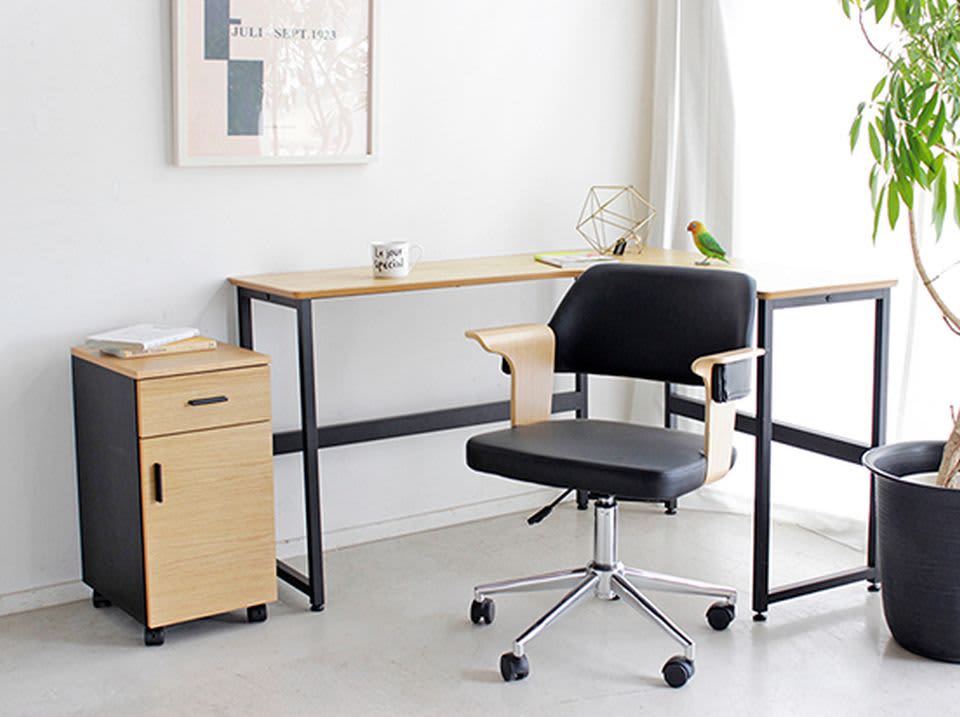 デスクの下にオフィスワゴンを収納し、必要な場合はサイドデスクとして使う予定の場合、キャスターが付いているオフィスワゴンなら移動がスムーズです。特に、重い書類を収納している場合は移動するのも一苦労なのでキャスター付きならばとても便利。また、掃除をする場合も手間がかかりません。