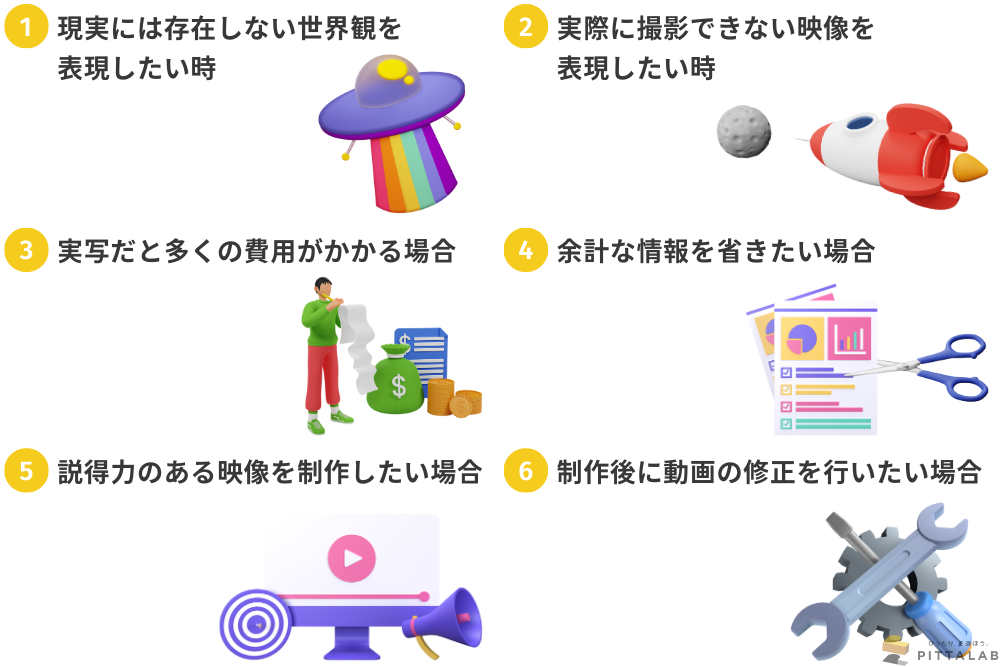 そこで本記事では、おすすめのCG動画に強い動画制作会社の紹介と制作会社を選ぶポイントやCG制作の発注が適しているケース、制作会社を選ぶ前に決めておくことを解説しています。