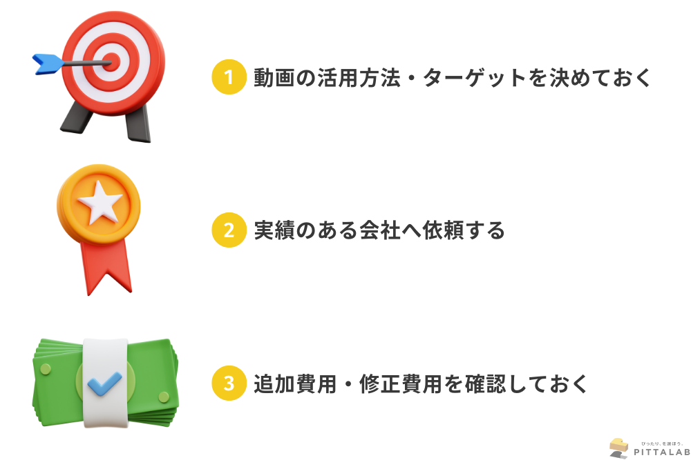 また、明確な活用方法を決めておくことで動画制作会社へ依頼する際にもイメージが共有しやすくなるため、必ず最初に押さえておいてください。
