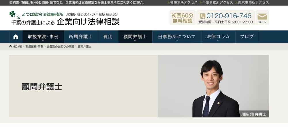 ”いつでも・どこでも・気軽に・すぐに”がモットーのよつば総合法律事務所では、悩みやトラブルが起きた際、解決にかかるまでの時間のロスやストレスを大幅に軽減することを目的としています。併せて、問題の拡大防止やトラブル予防にも努めてくれるでしょう。