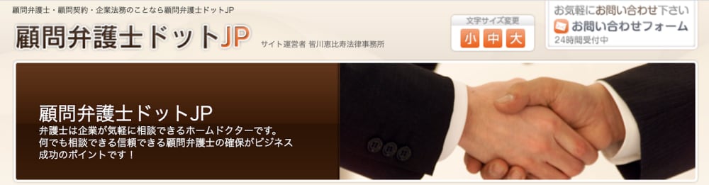 皆川恵比寿法律事務所が展開する顧問弁護士ドットJPでは、個人事業主や中小企業プランをはじめ、様々なニーズに適応した4つのプランが用意されています。また、ホームページ上には”知って得する法律豆知識”として専門家による説明がされているのでチェックしてみるのもおすすめです。
