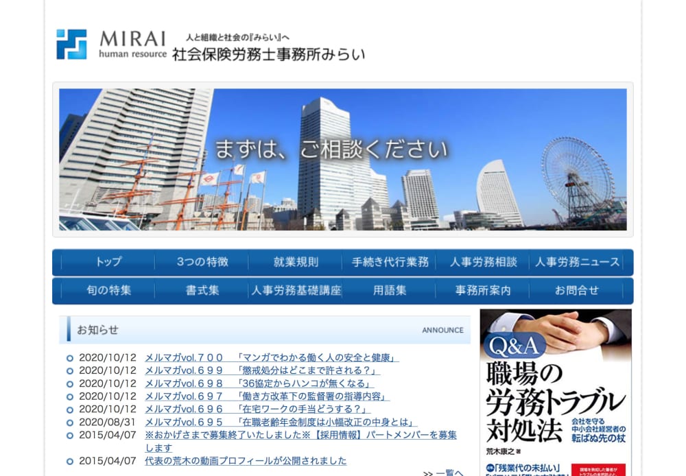 社会保険労務士事務所みらいは幅広い業種・企業の労務管理に対応する事務所です。就業規則作成に関する初回無料相談を行い、サービス残業などの悩みを解決します。