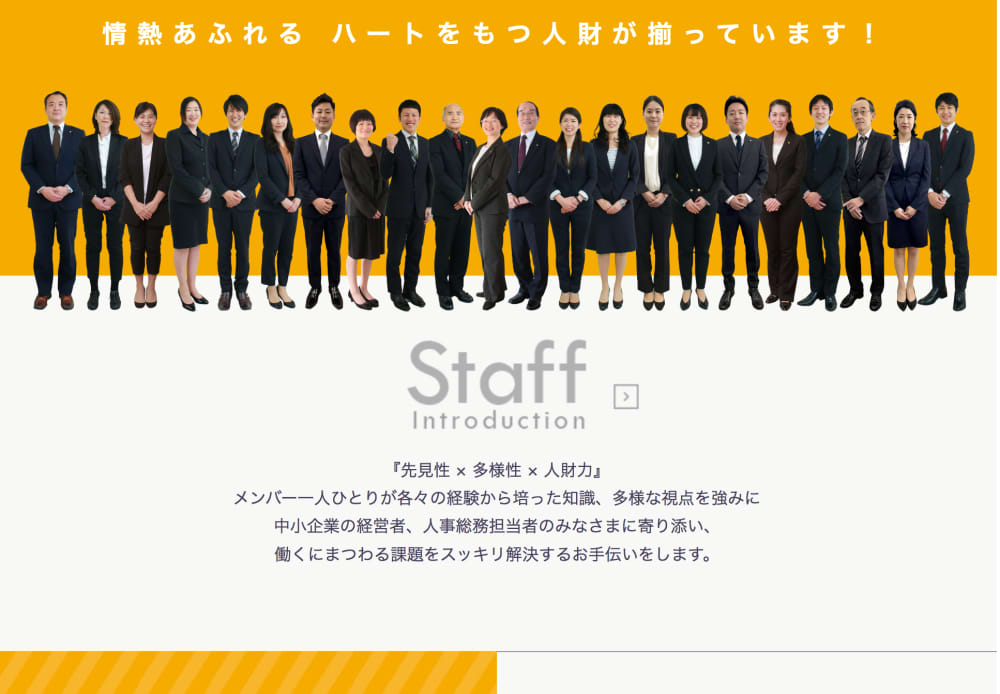 また、適切な講師を派遣して管理職研修やリーダーシップ研修を実施。企業の抱える課題に合わせて社内研修を行い、人材育成をサポートします。就業規則や人事制度の作成・見直しを考えている方、人材育成に力を入れたい方におすすめの事務所です。