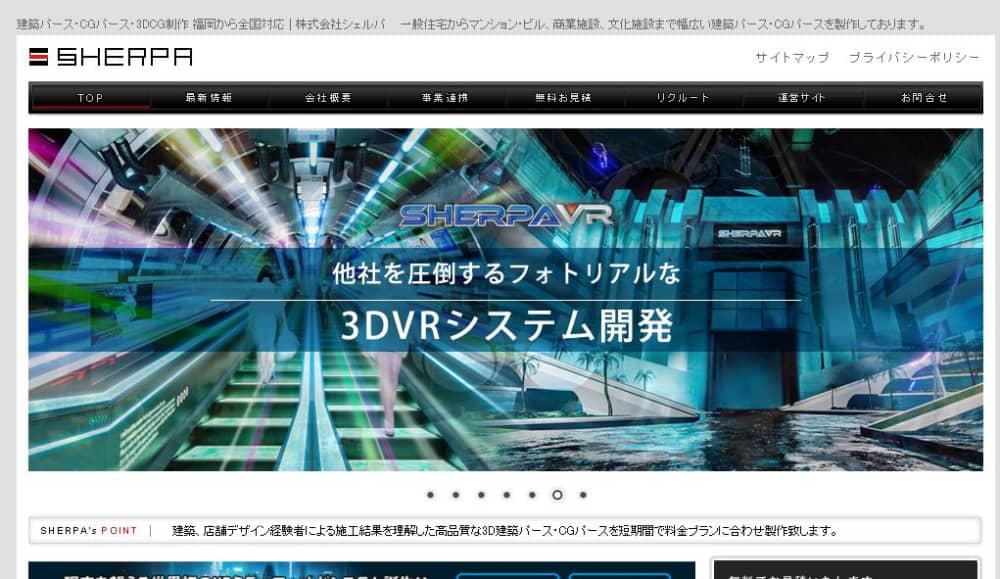 「株式会社シェルパ」は福岡県福岡市に本社を構えるシステム開発会社。建築パース・CGパース・3DCGアニメーションを中心に、様々な分野のデジタルコンテンツ制作事業を手掛けています。