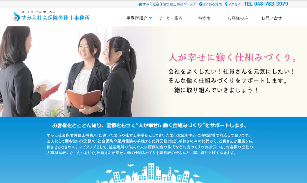 すみえ社会保険労務士事務所は、人が幸せに働く仕組み作りを地域密着型で行う会社です。頑張る人の幸せを手伝う労務相談ダイヤルを使えば3営業日以内に返信が可能。スムーズな対応でクライアントを支えます。