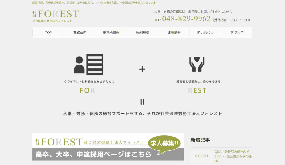 社会保険労務士法人フォレストは、労務相談や管理以外にもセミナー・研修を実施しており、従業員教育を徹底できる会社です。解雇・残業代などに関する労務トラブルセミナーや複雑で理解しにくい年金セミナーなどを開催しています。