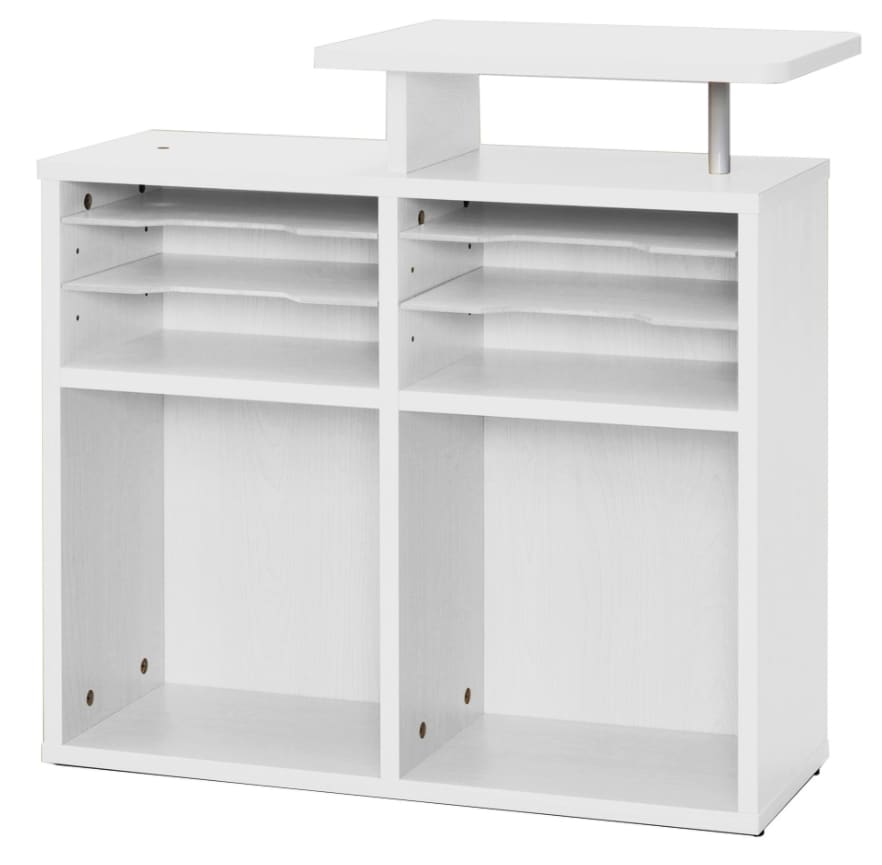 アール・エフ・ヤマカワ株式会から発売されているレジ台で、レジ周りに囲いがついていてお客様からの視線を遮ることができます。幅が110cmあるので余裕を持ってレジを設置することができ、天板の体重量は20kgのためレジを置いてその他荷物を収納しても余裕があります。