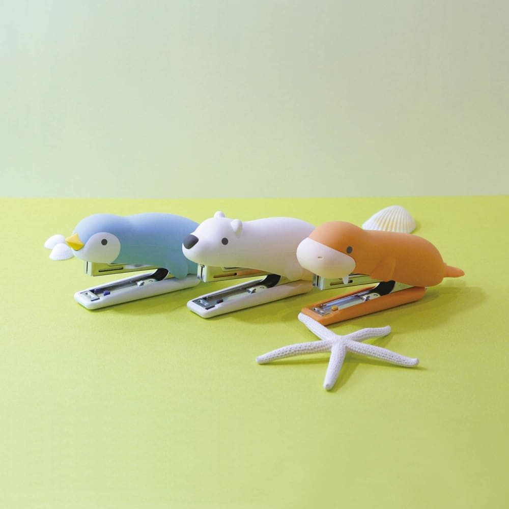 可愛らしいホッチキスをお探しの方におすすめ。つめたいうみのいきものを表現した、シリコンカバーによる可愛らしいホッチキスです。シリコンは独自のさらさらした優しい手触り。仕事の忙しさを癒してくれそうなアイテムなので、デスクに一つ置いておくだけでも、価値があります。