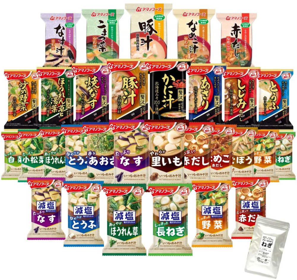 アマノフーズ フリーズドライ 味噌汁 31種類 小袋ねぎ1袋 1か月 セット【アマノ】