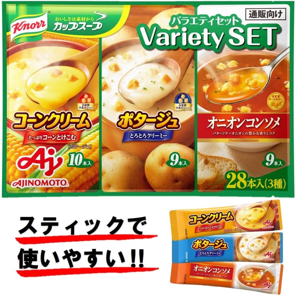 味の素 クノール カップスープ バラエティセット 28本入り 【スティックスープ】 【コーン10本、ポタージュ9本、オニオンコンソメ9本】【味の素】