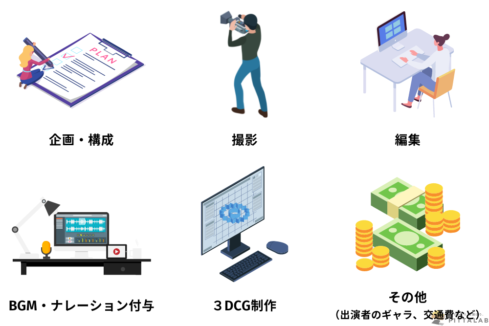 また、ナレーションを付与する場合は、スタジオのレンタル費用やキャスティング費用も含まれます。