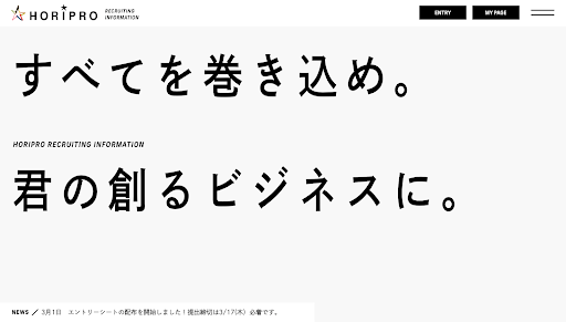 総合エンターテインメント企業としてタレントマネージメントなど行っている株式会社ホリプロの採用サイトです。